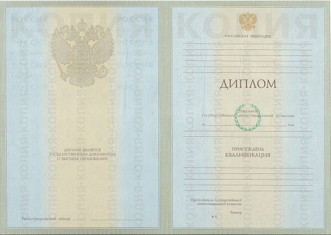 - Год выпуска (диплом будет соответствовать оригинальным образцам выбранного периода времени).